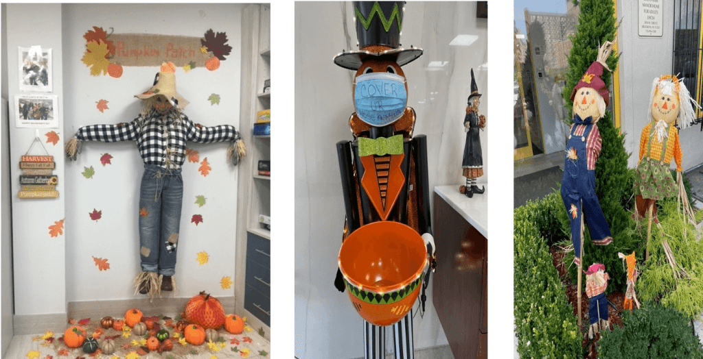 As we are winding down the summer, we are looking forward to the crisp air of the fall. As you can see, we go all out decorating the building and the property to celebrate the change of the season.